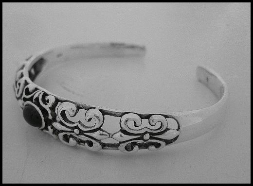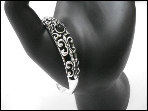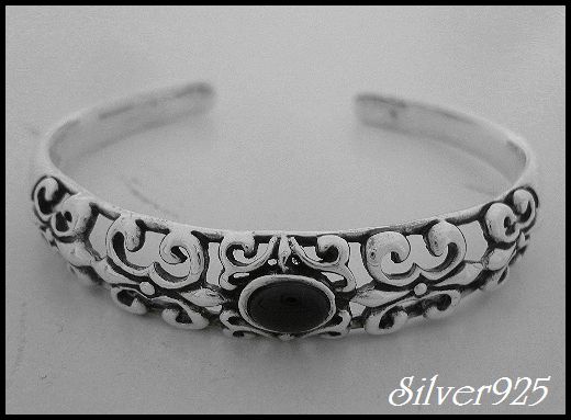 シルバー925純銀 天然石オニキス付 透かしアラベスク バングル/1点限り