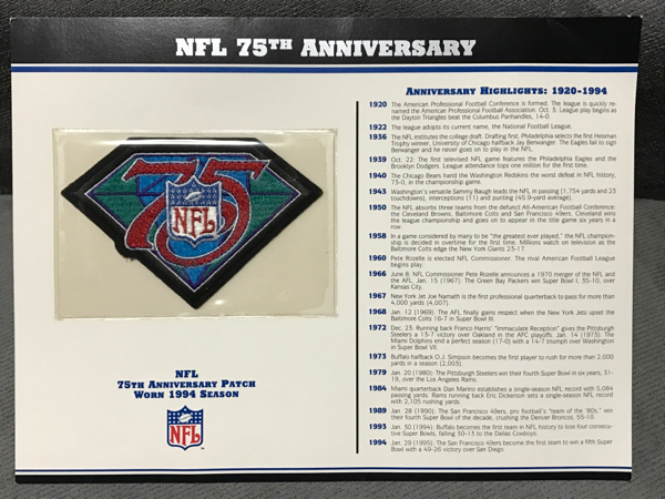 1995年にNFL ナショナル フットボール リーグ創設75周年を記念して作られたパッチです。