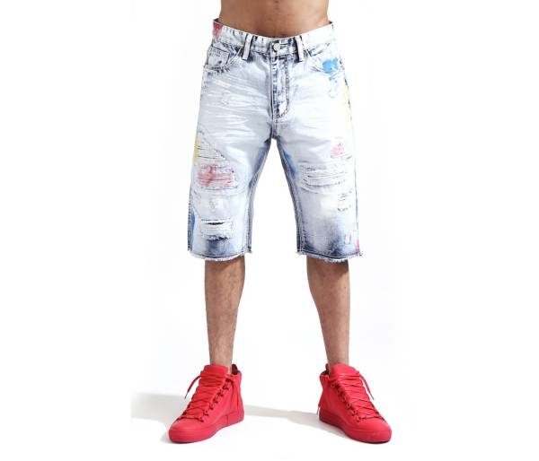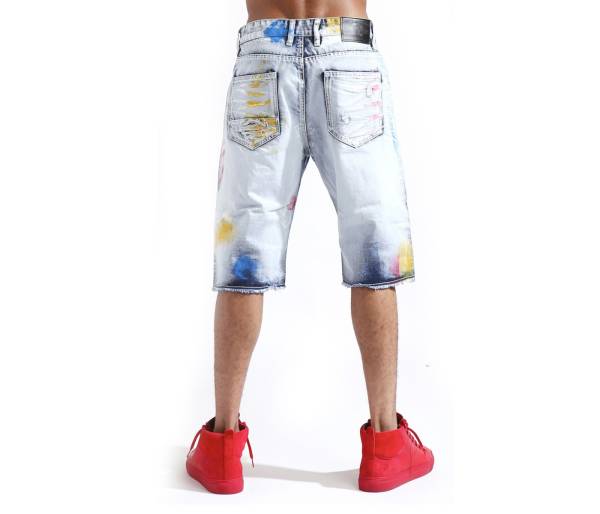 AT82)SMOKE RISEペイントダメージ加工デザインデニムハーフパンツ(JS7142)★HIPHOPB系カジュアルストリート