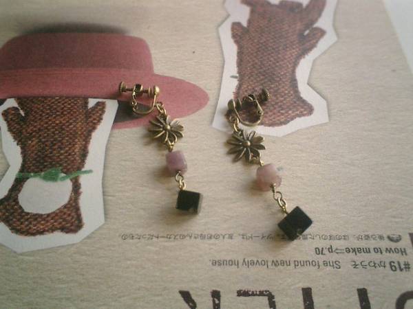 仏蘭西物語・・シリーズです♪オニキスと小さなお花・・シックな黒と紫色のイヤリングです♪オニキスとレピドライトのスクエアにお花のチャームを合わせてアンティークモダンしています♪オニキス、レピドライトは6ミリのスクエア、お花のチャームは12ミリ位です♪長さは全長6センチ位です♪ピアスにも変更出来ます♪お揃いのネックレスやブレスレットも出品しています♪♪シンプルで飽きのこないいつまでも着けられるデザインを考えて作りました!ハンドメイドをご理解頂いてノークレーム、ノーリターンでお願いします