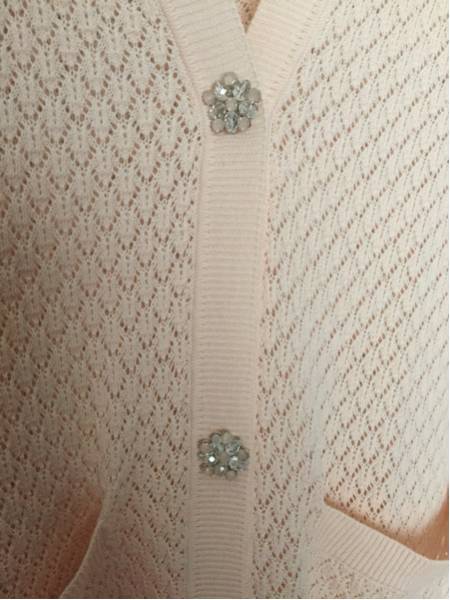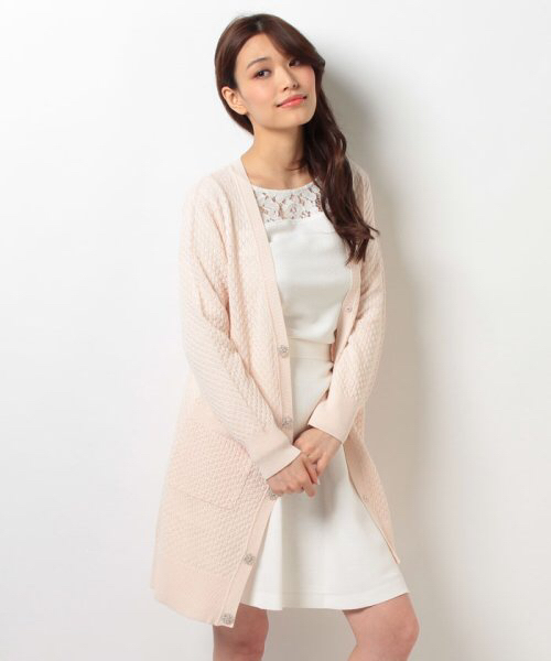 ニュアンス感のある編み柄が、優しい雰囲気に仕上がったロングカーディガン。ゆったりとしたロングなシルエット。お花のビジューが可愛いです