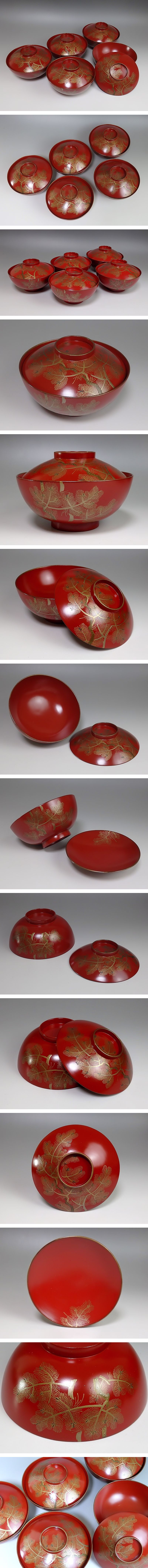 ★華心★ FFm 蒔絵 若松の図 吸い物椀 木製品 5客
