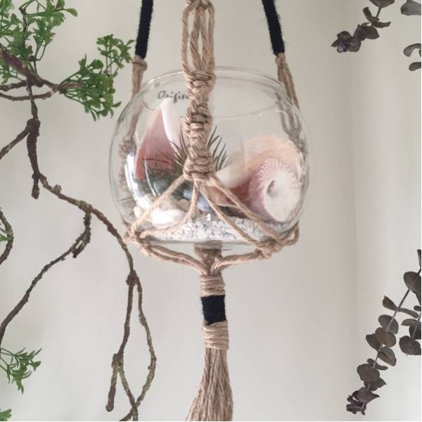 ガラス、鉢、スターヒィッシュ、シェル、リメ缶、DIY、ボーダー、夏色、西海岸インテリア、モビー ル、マクラメ
