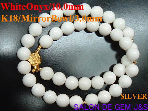 【新品】【上質】【SV:高級天然ホワイトオニキス(しま瑪瑙)& K18ミラーボールデザインネックレス】(O 10.0mm/K18ミラーボール3.0mm)【長さ:約45cm】【高級クラブ使用】【赤字大処分】【本数限定】【収納化粧箱付】【製作元オークション】【ラッピング無料】