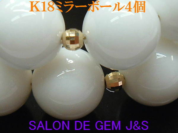 【大粒天然ホワイトオニキス(しま瑪瑙)約10.0mm珠プラスK18ミラーボール4個】