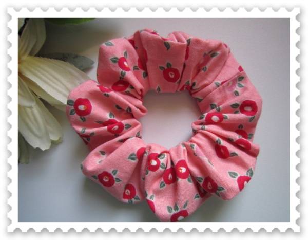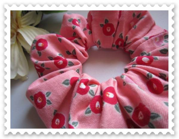 ★シュシュ★ ●昭和レトロ●和柄●可愛い椿柄●ピンク●