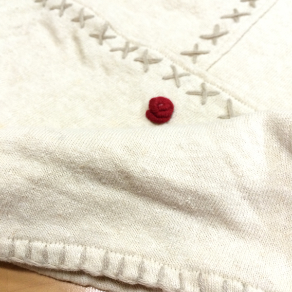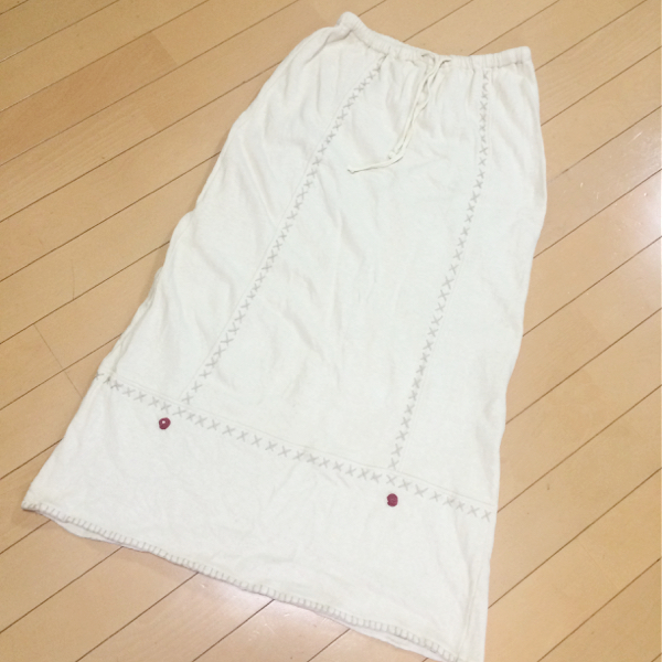 ◆赤いお花モチーフやステッチが可愛い楽ちんスカート♪ネップ感ある素材がナチュラル可愛い