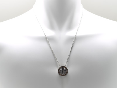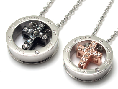 ステンレスネックレス ブラック&ピンクゴールドクロス&ジルコニア