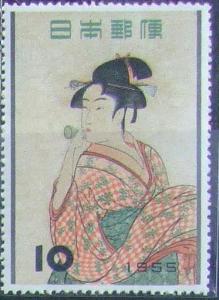 昔懐かしい切手 切手趣味週間 「ビードロを吹く娘」 1955.11.1.発行e