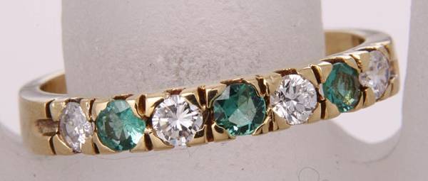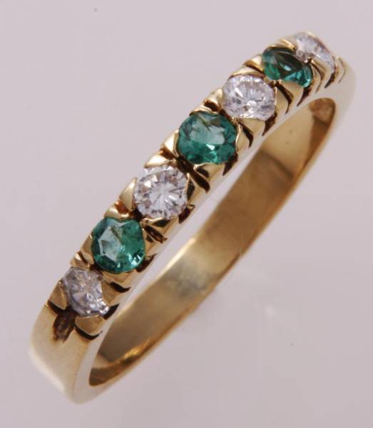 ke8310◆750(K18)製リング ITALY刻印 エメラルド/ダイヤモンド 一文字デザイン 12号