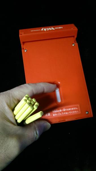 当たり(はずれ?!)を抜こうとすると、発射スイッチにつながれいて、残りのポッキーたちが、飛び出します。