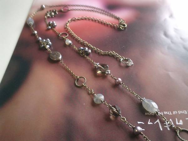秘めた想い・・シリーズです♪大人色のモノトーンに恋して・・シックなモノトーンでまとめた大人色のネックレスです♪色をおさえて遊びを入れたデザインのネックレスです♪4ミリから6ミリ位のポテト、10×4ミリのフラットオーバルのチャコールグレーの淡水パールや6ミリ、8ミリのコイン、10×8ミリのオーバルカットのラブラドライト、8ミリのヘキサゴン、12ミリのコインカットのスモーキークォーツにお花のチャームやリングを合わせて可憐な表情です♪長さは全長102センチ位で調節自由です♪2連にされたりブレスにされても素敵です♪お揃いのネックレスやブレスレットやピアスも出品しています♪♪シンプルで長く着けていただけるデザインを考えて作りました♪♪ハンドメイドをご理解頂いてノークレーム、ノーリターンでお願いします。