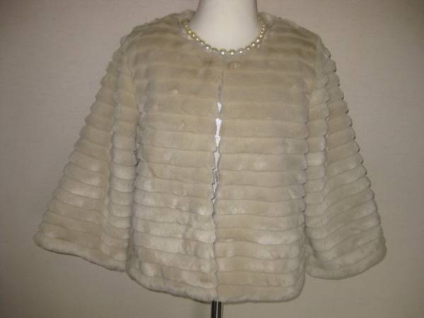 ★七分袖アイボリーフェイクファージャケット★新品11号/L  結婚式/二次会/パーティ