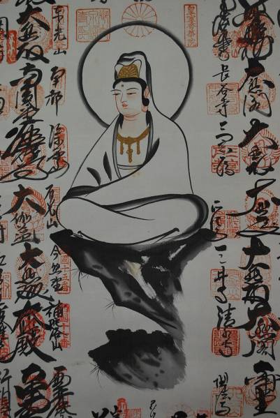 西国 三十三ヶ所/西国三十三箇所霊場集印肉筆掛軸//掛軸☆宝船☆H-281 J
