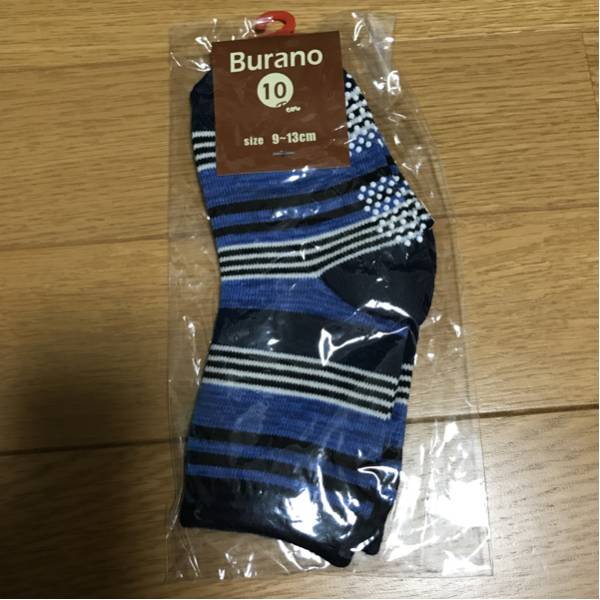 新品未使用 Burano ボーダー柄靴下 9~13cm 青