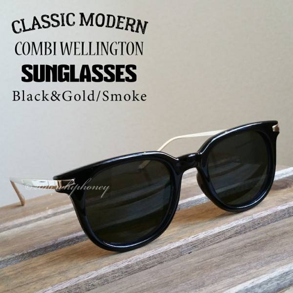 黒縁ウェリントンコンビだて眼鏡 ブラックスモークサングラス