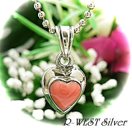 シルバー925銀のピンク コーラル ハート ペンダント/ALL50%OFF