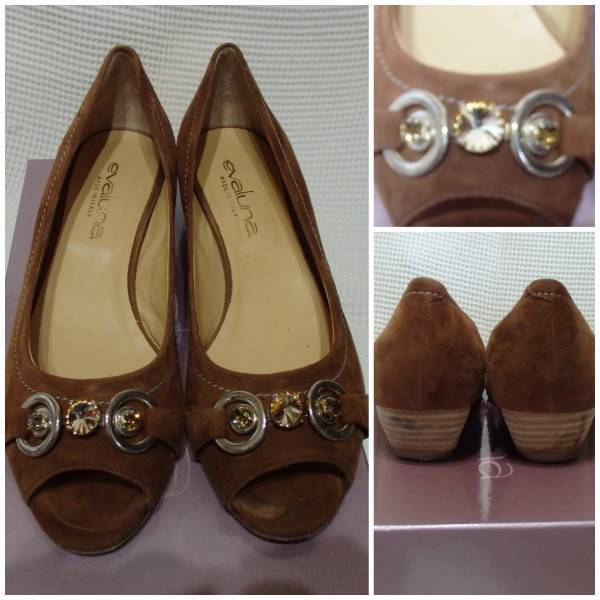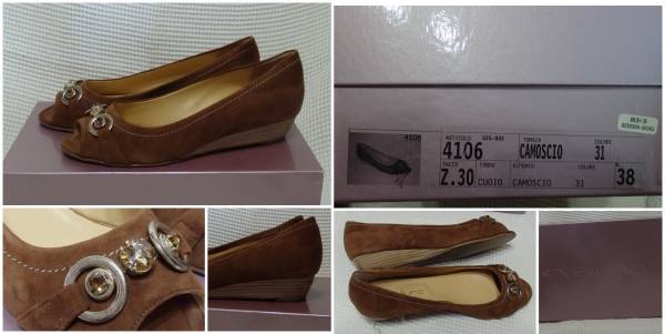 ☆イタリア製のおしゃれなパンプスです。大き目のストーンがとても素敵。低めのウエッジソールですので履きやすいです。