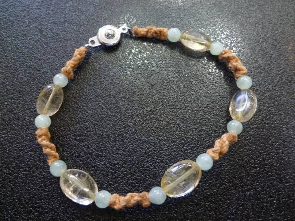 ☆ゴールドルチルクォーツ、プレナイトの 高品質のマクラメ ブレスレット商品です。