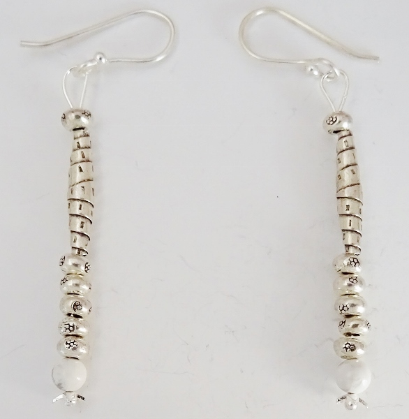 ◆カレンシルバー&天然石のロングピアス◆ハウライト◆17hp06<Howlite・白・ホワイトターコイズ> |