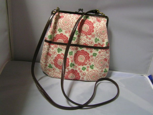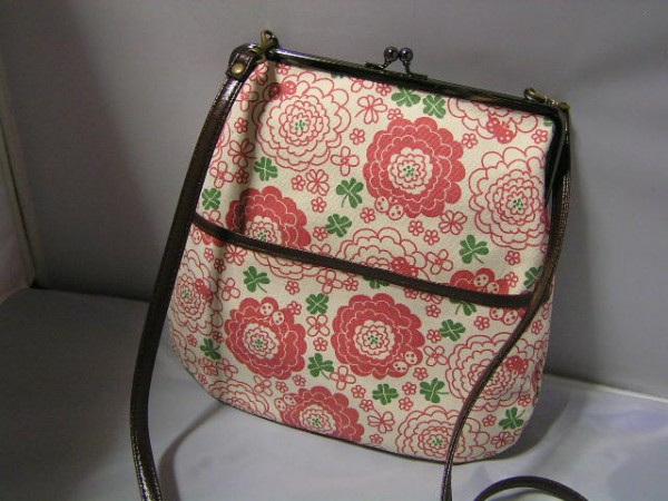 帆布に北欧調柄のプリントのがま口タイプのショルダーバッグ。