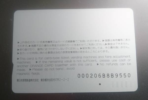 JR東日本発行のフリー柄オレンジカードです。
