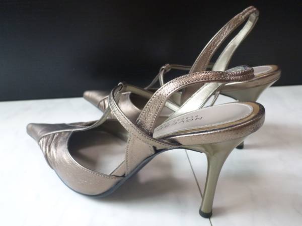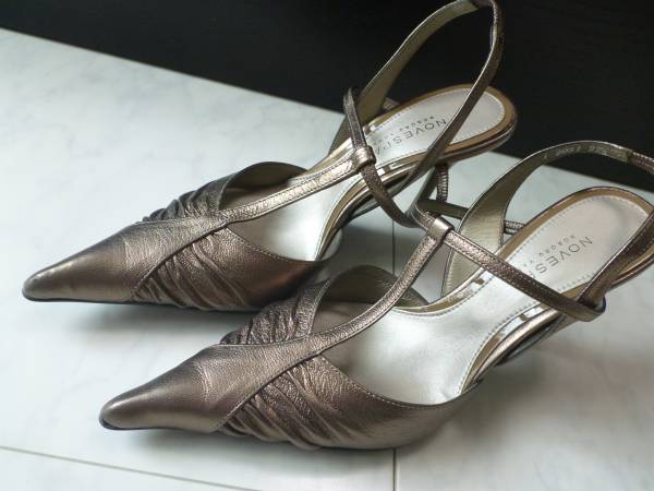 2.5万★NOVESPAZIO ノーベスパジオ★ 茶系メタリック 本革 パンプス サンダル 22.5