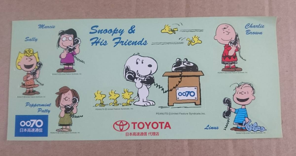 1990年代当時のトヨタ自動車による日本高速通信のノベルティーのスヌーピーの非売品シールです。