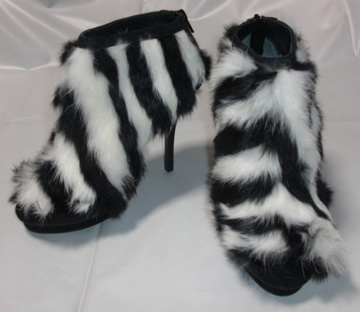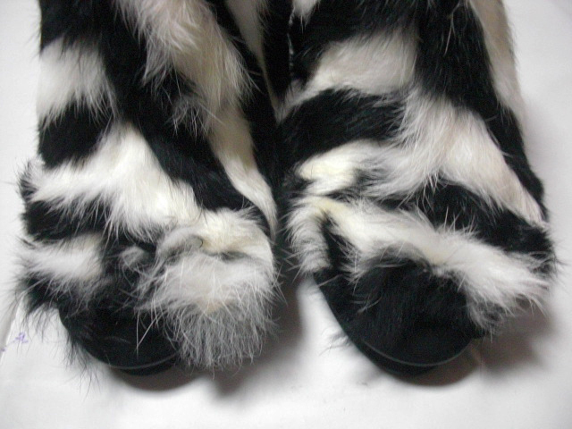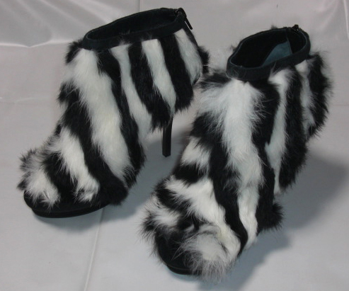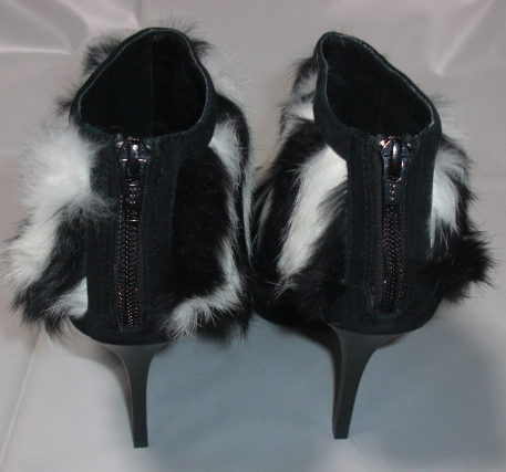 後ろ側にファスナー有り・ヒールの高さは約11センチ程です、若干の誤差はご了承ください 素材は羊革・ラビットファー・革底です。