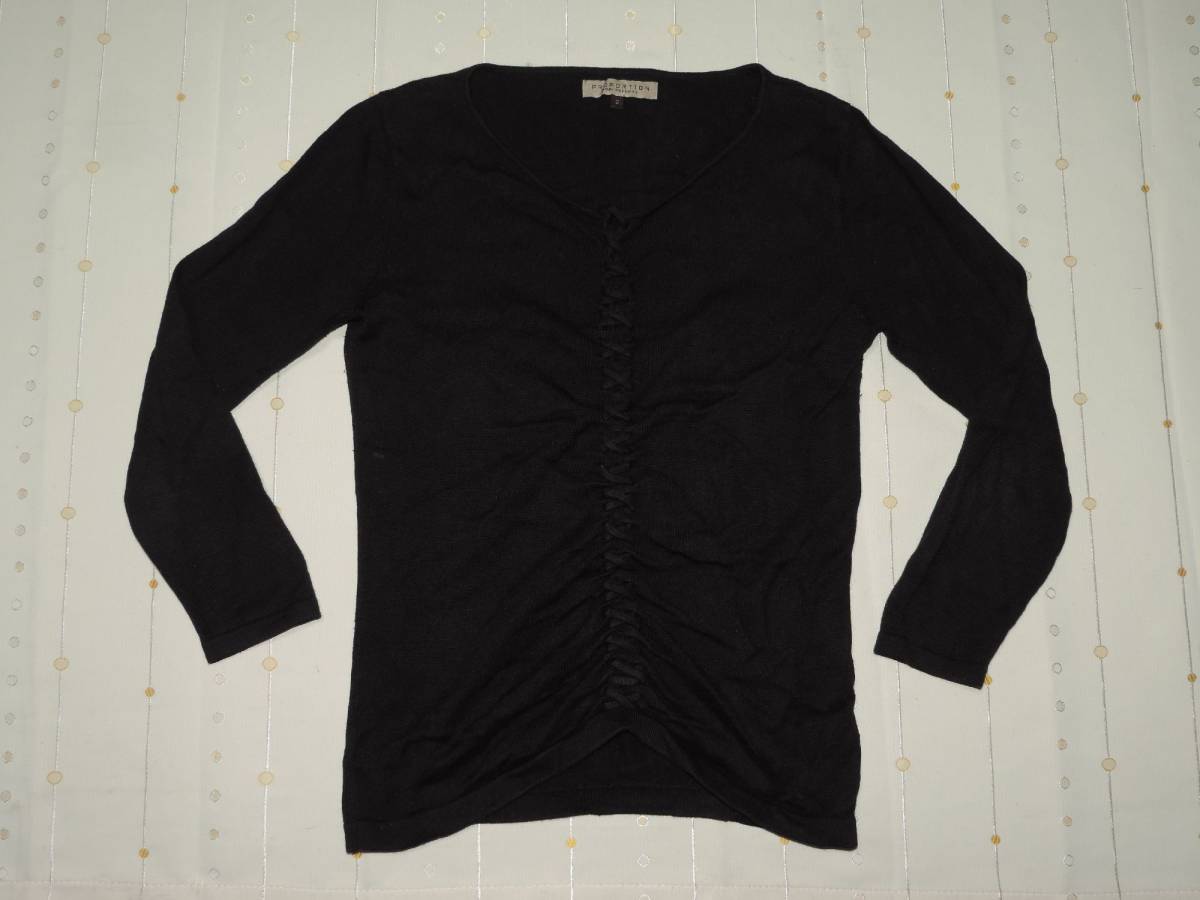 ☆評価6000達成記念☆真ん中くしゅくしゅリボンデザイン黒の七分袖☆S~Mくらい