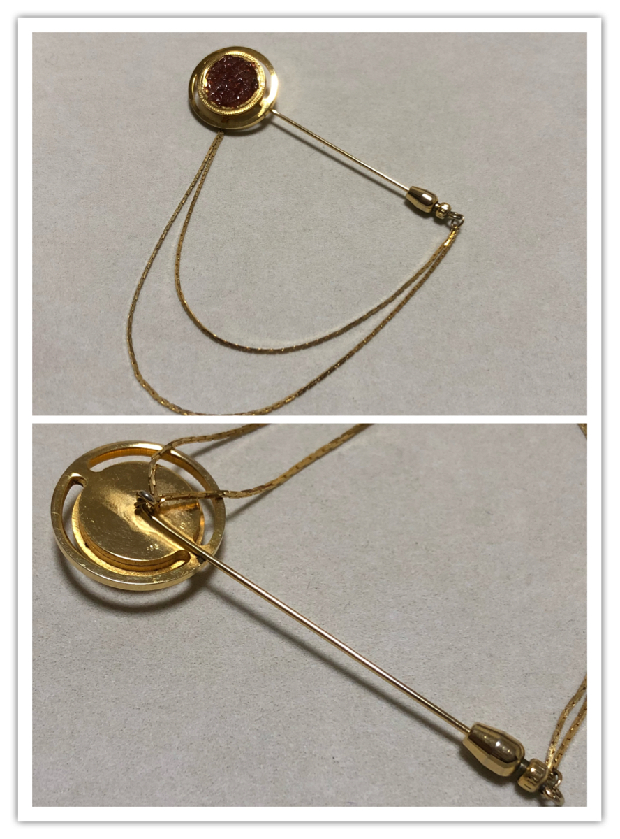 ピンク天然石を使用した、デザインピンブローチです。ピンク天然石の詳細は不明です。