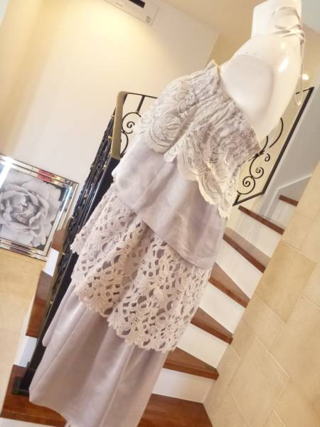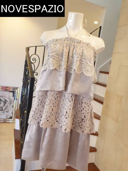 5万 人気完売 NOVESPAZIO ノーベスパジオ グレー系 レース フリル ワンピース 38  M相当