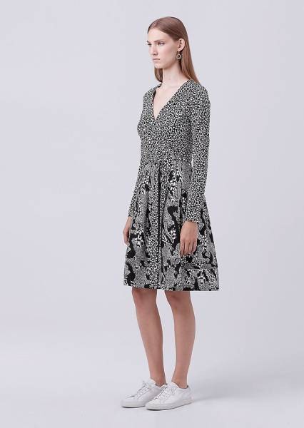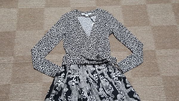 新品 送料無料 US0号/JP7号~9号ダイアンフォンファステンバーグ DVF ワンピース 白黒シルクコットンウール混Jewel Two Wrap Dress