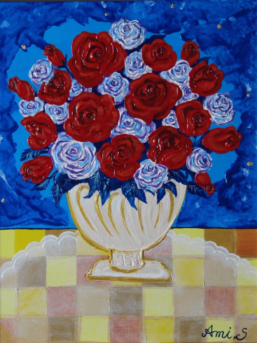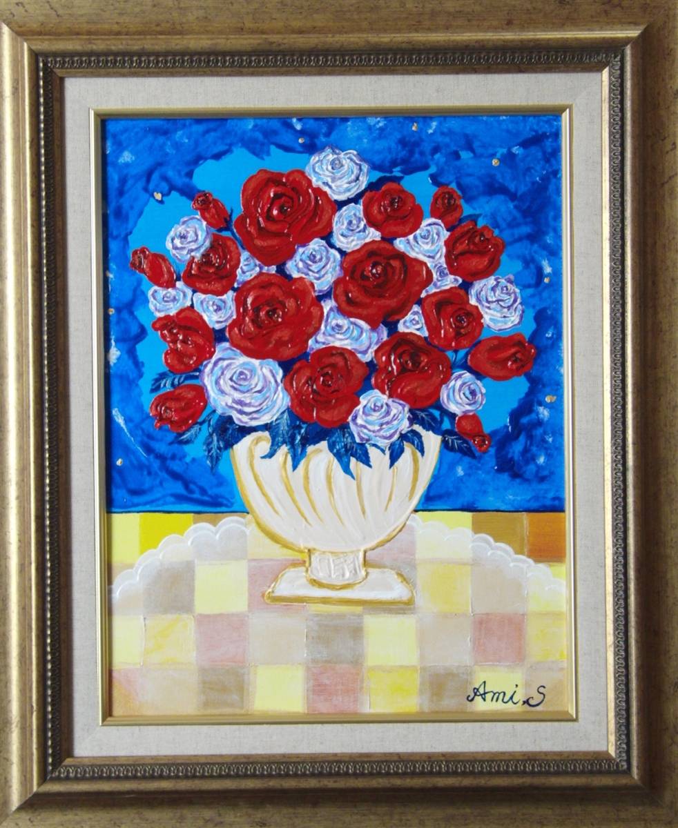 ≪国美協≫佐和山あみ、『ばら』、油彩画、F6号:40,9cm×31,8cm、油絵一点物、新品高級油彩額付、直筆サイン・真作保証付