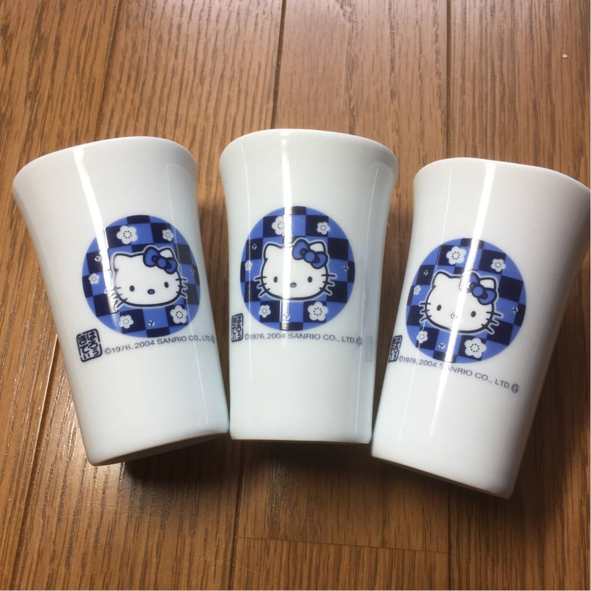 Sanrio2004年製はろぅきてぃの陶器製タンブラー3個セットです。今ではかなりレアな非売品だと思います。