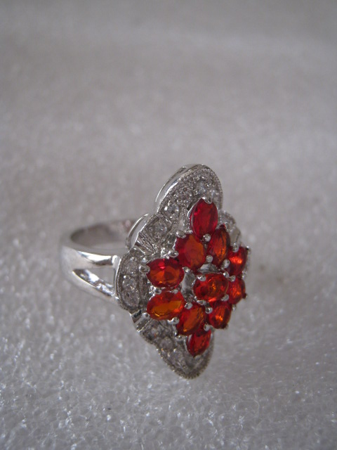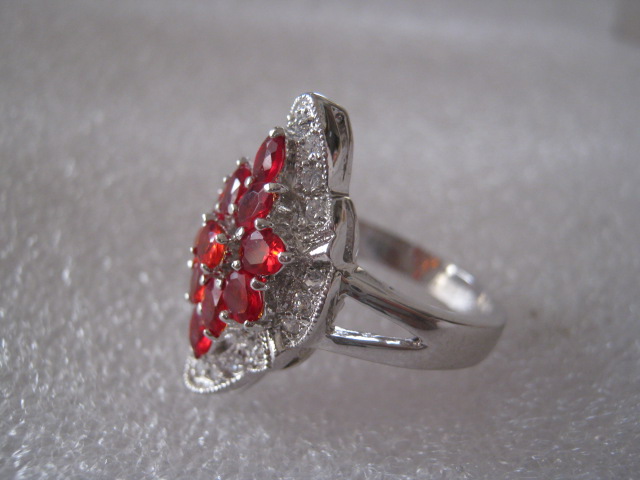 【イタリア】ビンテージ ファッションリング 花びらのようなルビー色の石 シルバー 20号