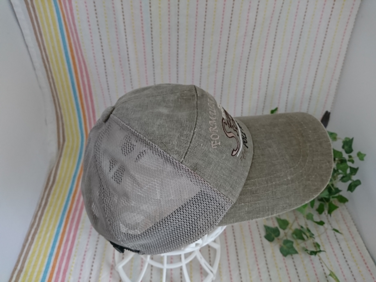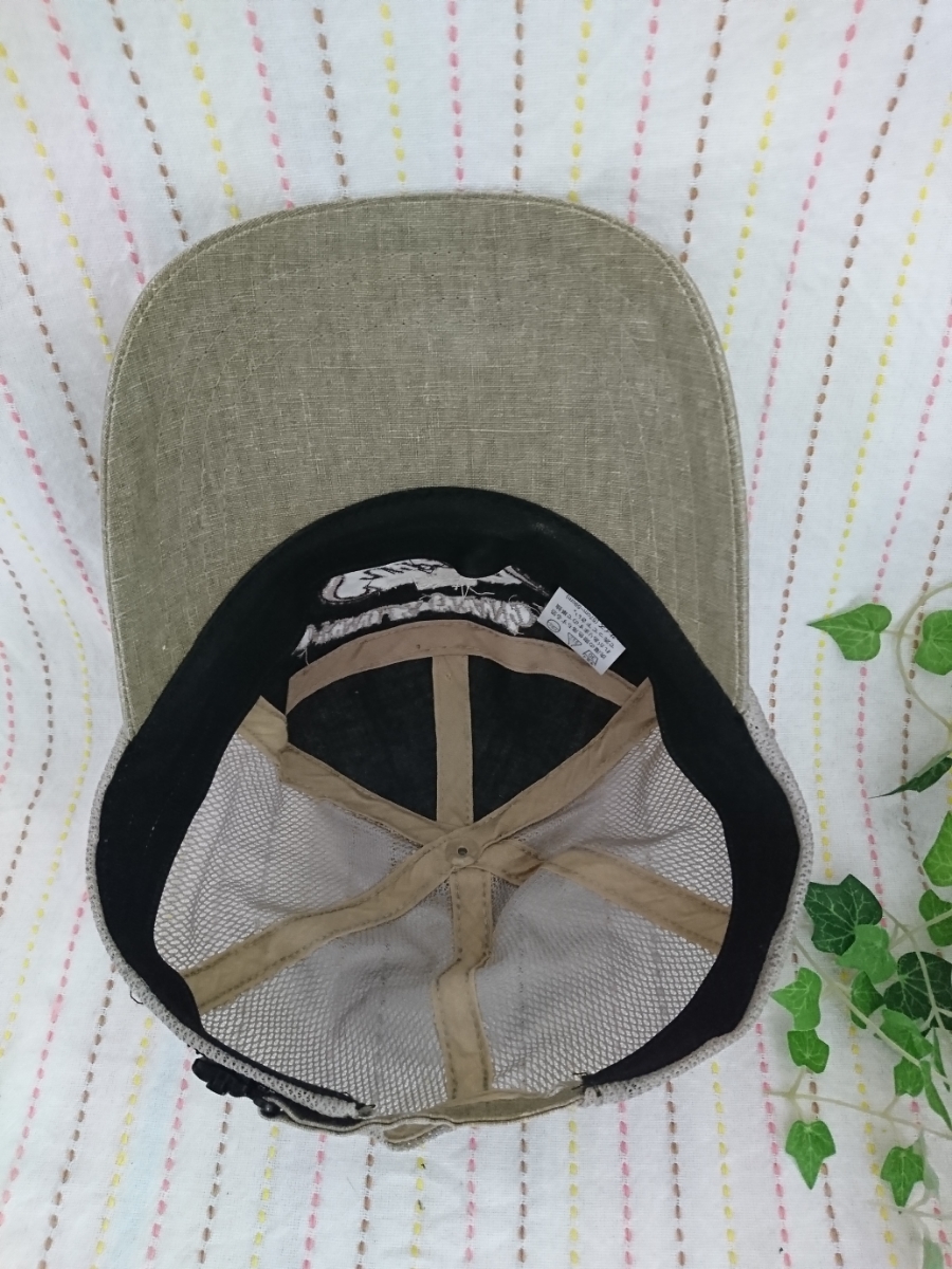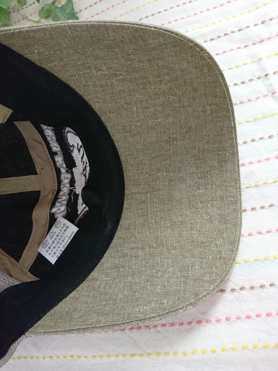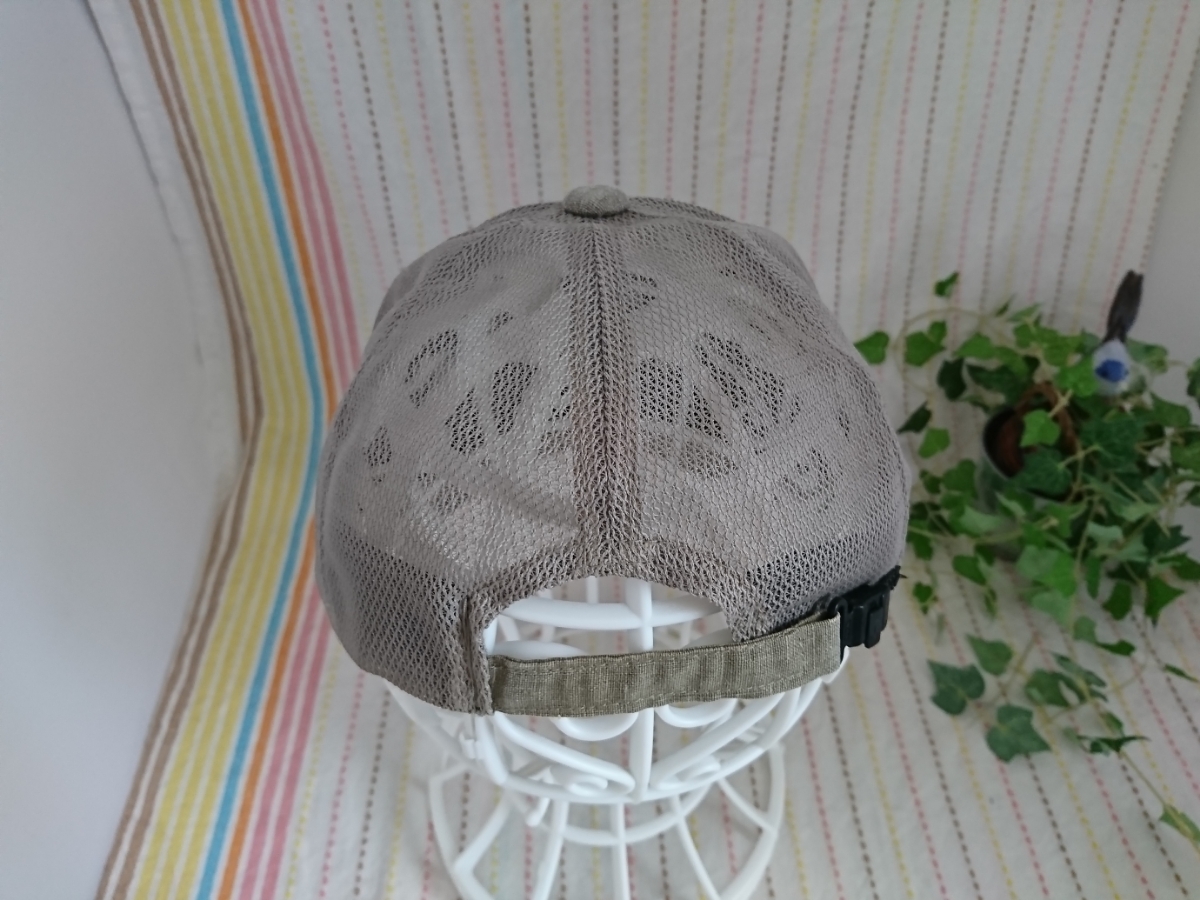 薄いカーキのようなお色のメッシュキャップです