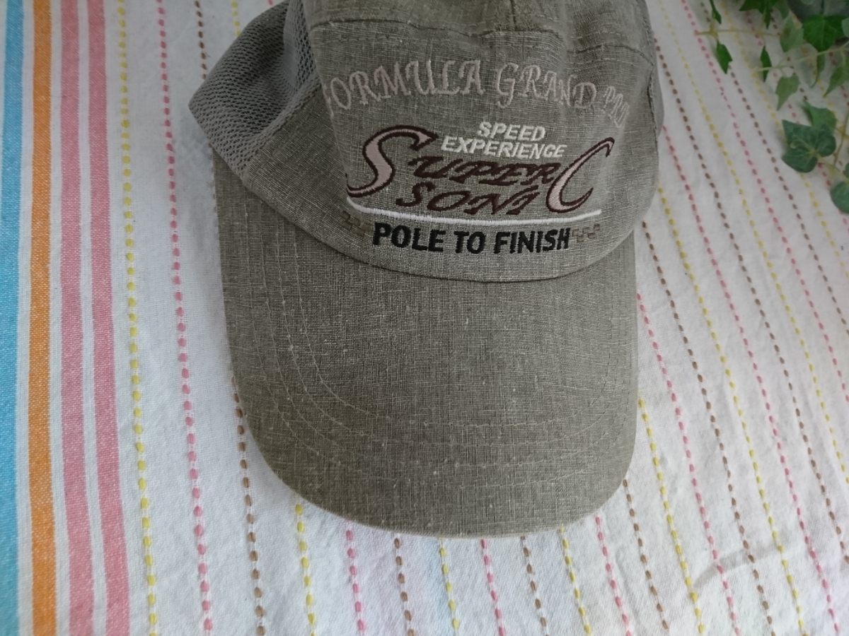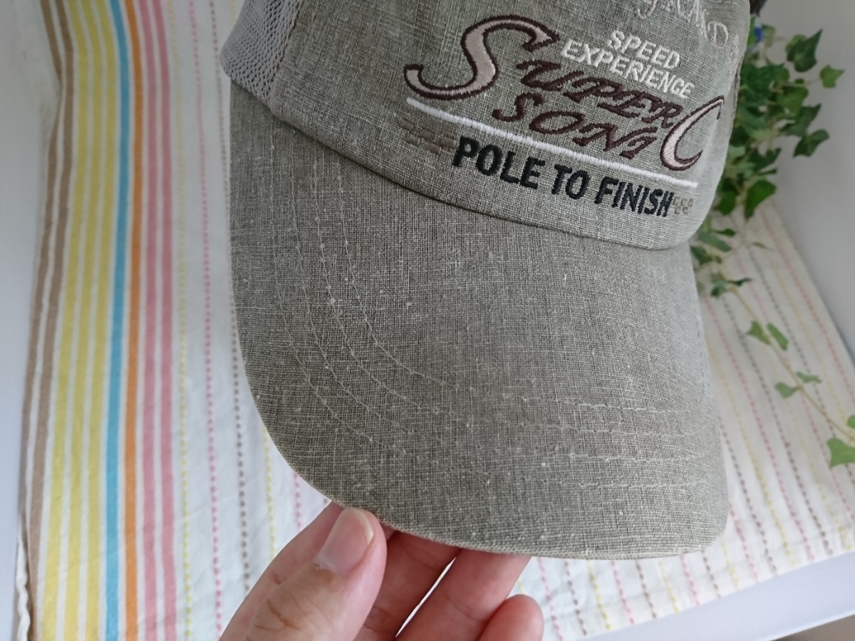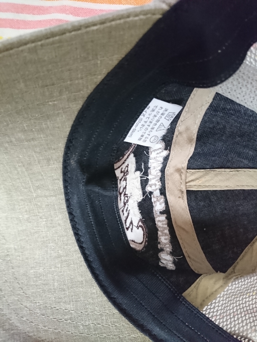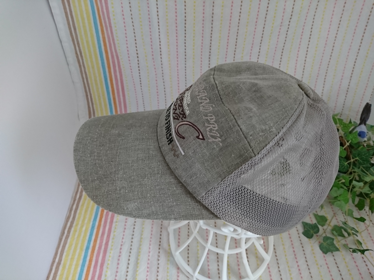 薄いカーキのようなお色のメッシュキャップです