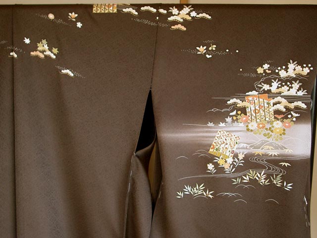 手描き京友禅 訪問着 香の図 焦げ茶色