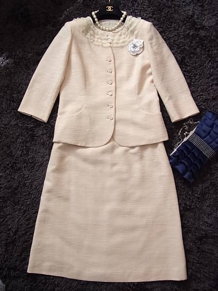 ★HANAE MORIハナエモリ★レース付スカートスーツ★38★入学式