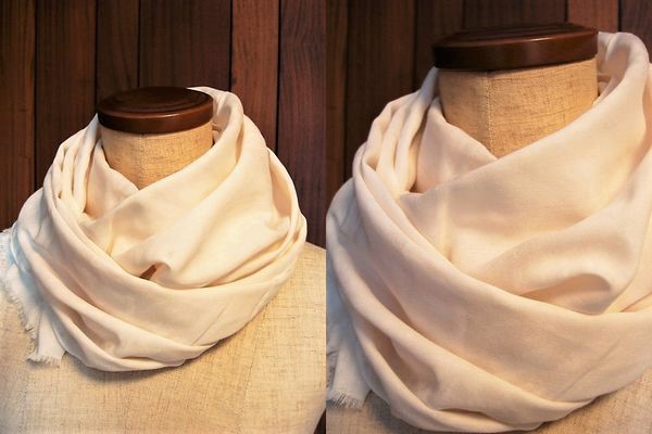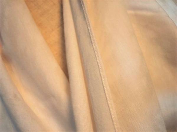 オフホワイト寄りのアイボリー レオパード柄はプリントではなく、ジャガード織込み柄 綿100% ワイルドなイメージはなくて、風に舞う花びらのようなエレガントシックな印象の柄 光の当たり方や見る角度によって柄が浮き出て見えるおしゃれな生地です。 ガーゼ調の柔らかな風合い、ごわっと感、ちくっと感は全くございません。 サイドの端の始末は、細い三つ折りの3mm仕上げにしています。 コットントーションレースのミニタブつき ◆サイズ(平置き:約cm) …多少の誤差はご容赦くださいませ。 幅:34.5~35.5 × 175 ジャガード織は裏にも柄が出ていますので、表裏を気にせずにお使いいただけます。 襟もとの差し色に、装いのアクセントとしてどうぞ♪ 気に入っていただけたら嬉しいです。 ※色違いもございます。 ※画像は販売済みのものです。サンプルとしてご覧くださいませ。 | ||||