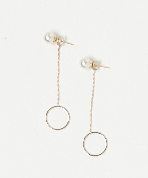 2WAY パール×チェーン×リング ロングピアス ぶら下がり ゴールド パーティ 結婚式 デート