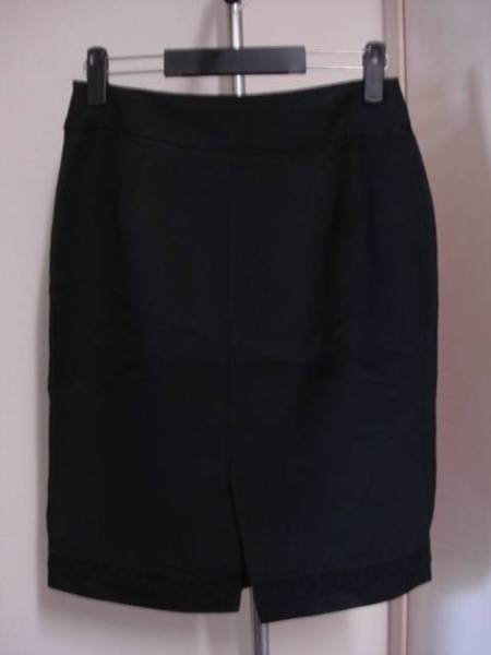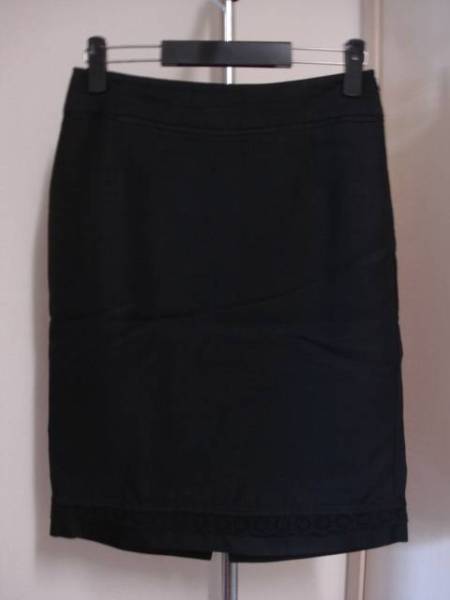 格安ガーリー可愛い定番アイテム ・ZARA WOMAN(ザラ)・ 黒系麻混紡地・裾レース系飾り付き・高級タイト系デザインスカート 40 M位?