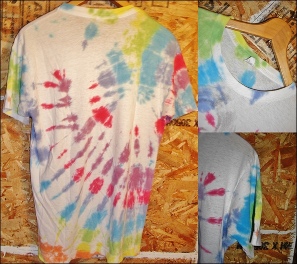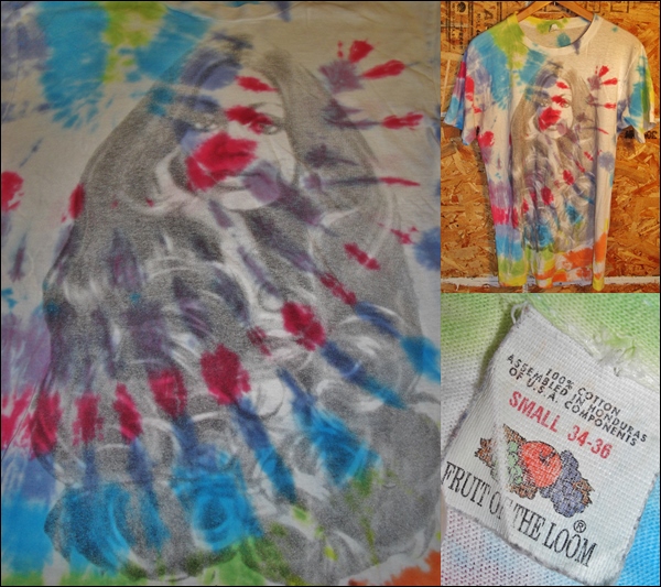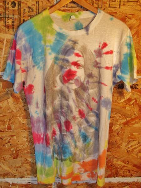 ・表面に女性のプリントと、総柄のタイダイ染め、