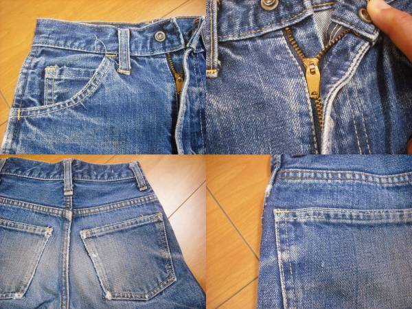 ・股、裾まわりタタキリペアあります。綿糸ほつれ所々あります。尻・ひざ摩耗、ビンテージらしい使用感