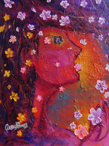 ≪国美協≫エレナ・クヴィッカ、『花と少女』、油彩画、F8号:45,5×37,9cm、油絵、新品高級油彩額付、直筆サイン・真作保証付