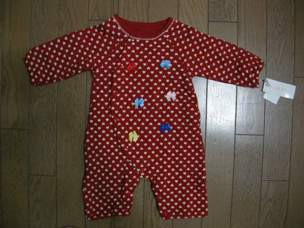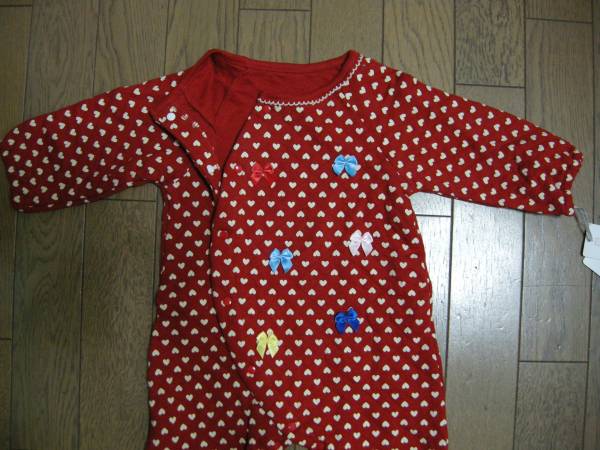 【新品】ハート柄リボン付あったかカバーオール 80