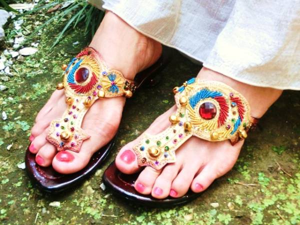 キラキラビーズと鈴が足もとを華やかにしてくれます。