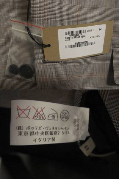 当オークションをご覧いただきありがとうございます。BOTTEGA VENETA ボッテガヴェネタ グレンチェックスーツ(2Bテーラードジャケット・トラウザーパンツ) サイズ44最小サイズ希少) 新品未使用(ポケット仮縫い有) ハンガー・タグ付 定価約38万円です。