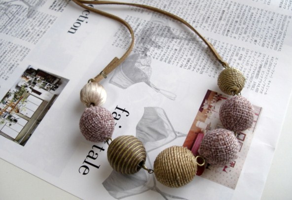 自由と遊びのパターン・・シリーズです♪春色の異素材・・ふんわりやさしい春色の異素材のネックレスです♪15ミリから25ミリ位までのベージュやモーヴピンク、ブラウンの編みボールや麻ビーズやサテンボールを集めました♪コーヒーブラウンのスェード紐を合わせて甘すぎない大人のロマンチックしています♪長さは全長90センチ位です♪短く結んでチョーカー風にされても素敵です♪お揃いのブレスレットも出品しています♪ハンドメイドをご理解いただいてノークレーム・ノーリターンでお願いします♪